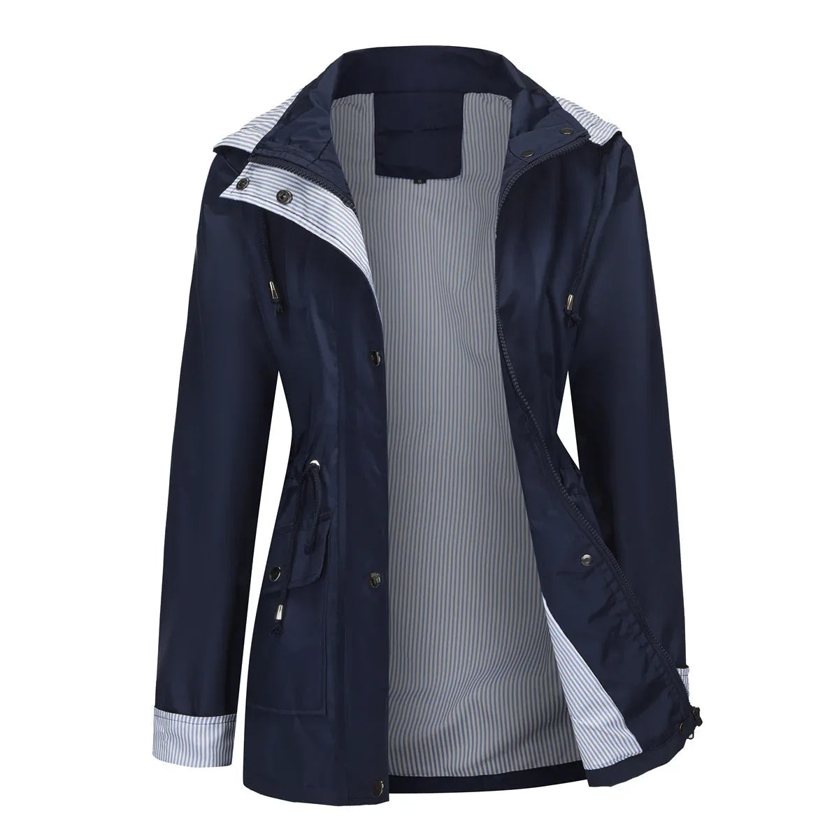 The Evania Waterproof Jacket combines modern functionality with an elegantly tailored silhouette. Crafted with precision from carefully selected fabrics, it offers a lightweight yet durable layer that keeps you comfortably protected from wind and rain. Designed to enhance your natural shape with a slim, streamlined cut, Evania flatters every figure while maintaining ease of movement and all-day comfort.
